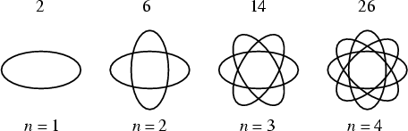 = 2), два эллипса в четырех (k = 4), а два треугольника в шести (k