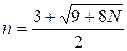 res = int(ceil((3 + sqrtl(9.0 + 8*n)) / 2));