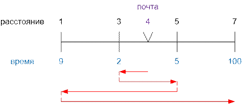 Для доставки письма в единственный дом, индекс которого равен i, необходимо затратить время, равное расстоянию от начального положения initialPos до местоположения дома address[i].