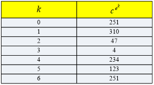 Из таблицы имеем: c =  = 251. Поскольку me = , то m =  = 123.