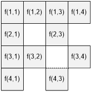 f(2, 2), f(3, 3) и f(4, 4) из f(1, 1);