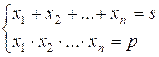 Пример. Найти n = 5 чисел, сумма которых равна s = 10, а произведение p