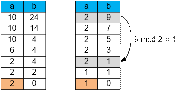 the gcd. For example, gcd(10, 24) = gcd(10, 14) = gcd(10, 4) = gcd(6, 4) =