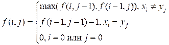 j) – длина наибольшей общей подпоследовательности (НОП) для префиксов