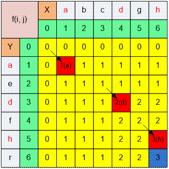 Y = aedfhr. Наибольшей общей подпоследовательностью будет adh, ее