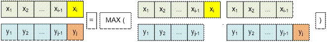 ·        the prefixes x1x2xi-1 and y1y2yj (their LCS is f(i – 1, j)).
