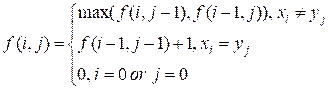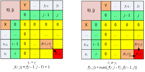 Let f(i, j) be the length of the longest common subsequence of the sequences x1x2xi and y1y2yj.