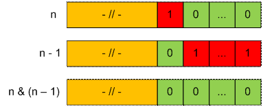 The operation n & (n – 1) resets in number n the last one bit in its binary