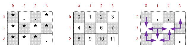соответствует вершине i * m + j графа. Для каждой соседней с ней пустой ячейки проводим в нее