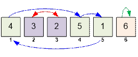 Любую перестановку можно представить в виде списка циклов. Например, перестановка [4, 3, 2, 5, 1, 6] представляется как (1, 4, 5)(2, 3)(6).