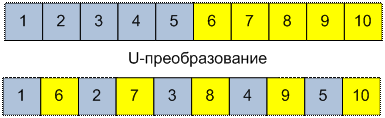 Рассмотрим U-преобразование. Если i Î {1, 2,…, n / 2},  то U(i) = 2i – 1, U(n/2 + i) = 2i.
