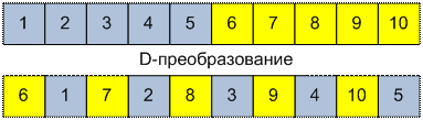 Рассмотрим D-преобразование. Если i Î {1, 2,…, n / 2},  то D(i) = 2i, D(n/2 + i) = 2i – 1.