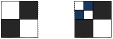 выполнения операции первый раз получим 4 квадрата с длиной стороны side = side / 2 = 1/2, два из которых следует закрасить черным цветом. То
