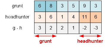способностями grunt и headhunter. Первые g орков отнесем к grunt, последние h