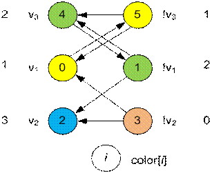причем четным вершинам будут соответствовать вершины vi, а нечетным их отрицания !vi.