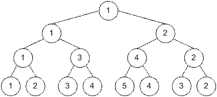 Если, например, провести проталкивание сразу, то получилось бы дерево отрезков, соответствующее частичным суммам строки ”((((()))”, то есть последовательности {1, 2, 3, 4, 5, 4, 3, 2}.