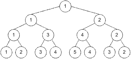 дерево отрезков из соответствующих ей частичных сумм {1, 2, 1, 2, 3, 2, 1, 0}.