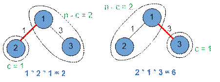 2 itself). Then, on the other side of the edge (1, 2) there are n – c = 6 – 4 = 2 vertices. Therefore, the number of distinct