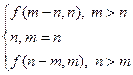 Функция f(m, n) вычисляет наибольший общий делитель (НОД) чисел m и n. Для решения