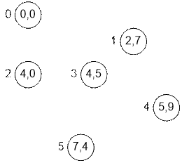 Пусть n – число вершин в графе. Каждому ореху и начальному местоположению Лари поставим в соответствие вершину графа. Из условия задачи следует, что n £ 16. Все вершины графа будут попарно соединены (решается евклидова задача коммивояжера). Длина ребра, соединяющего вершины которым соответствуют координаты (a, b) и (c, d), равна max( |ac|, |bd| ). Матрицу смежности построенного графа храним в двумерном массиве m.