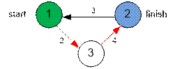 The shortest path from 1 to 2 equals to 2 + 4 = 6.