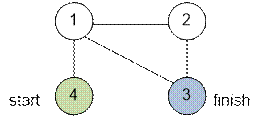 графе и номера начальной и конечной вершины. Далее в n строках задана матрица смежности графа. Если значение в j-м элементе i-й строки равно 1, то в графе есть направленное ребро из вершины i в вершину j.