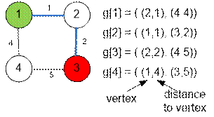 for storing the weighted graph. Each element g[i] is a list of pairs (vertex,