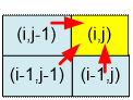 either from (i – 1, j) or from (i, j – 1) or from (i – 1, j – 1). Therefore