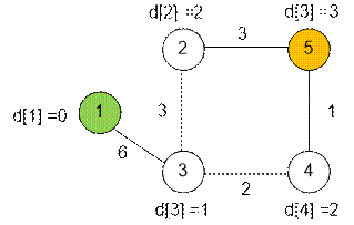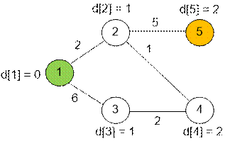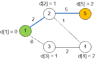 кратчайшим расстоянием от s до i. Расстояние вычисляется по