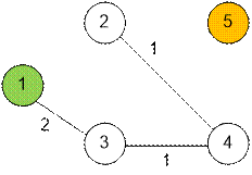 Вершина 5 недосягаема из вершины 1 на остаточной сети. Алгоритм заканчивается.