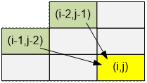 come into cell (i, j) only either from (i – 1, j – 2) or from (i – 2, j – 1). So