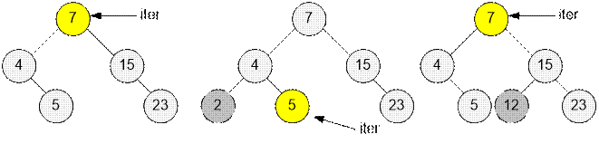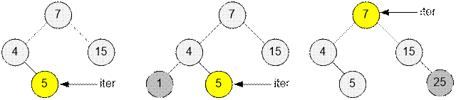 от итератора, то итератор не изменяет своего положения. Если вставка происходит