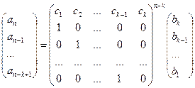 for(i = 1; i < k; i++) m[i][i-1] = 1;
