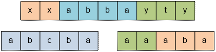 Для заданного примера – строки “abacdc”, имеются 3 подстроки, являющиеся суперпалиндромами: