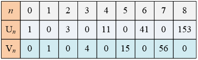 The values of Un and Vn for small n we