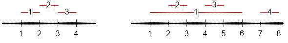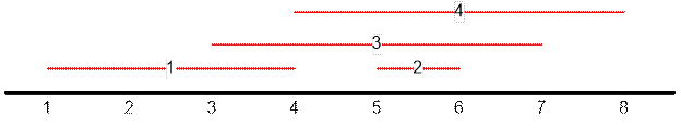 количество закрытых до начала [1; 4] имеется 0 отрезков. Отрезок [1; 4]