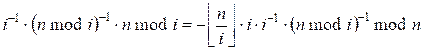 in-1 mod n = 1 для всякого 1 ≤ i < n. Равенство можно переписать в виде (i * in-2)
