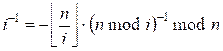 Теорема. Если inv[i] – число, обратное i по модулю n, то
