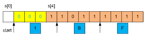 выведем эти четверки нулей и единиц в виде символов в шестнадцатеричной системе