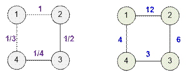 12). Например, вершины 2 и 3 соединяет ребро весом 1/2 (w = 2). Имеем: 12