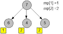 Рассмотрим вершину v. Пусть to1, to2, …, tok – ее сыновья. Нам необходимо знать наибольший порядок Штралера среди сыновей, а также количество раз, которое он встречается среди них. Пусть структура map<int,int> mp; хранит пары (order, cnt) – порядок Штралера и количество раз, которое он встречается среди сыновей.