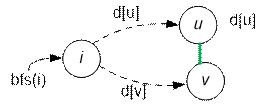 Значение d[v] хранит кратчайшее расстояние (по количеству ребер) от вершины
