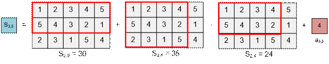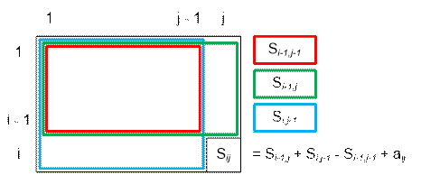 = s[i – 1][j] + s[i][j – 1] – s[i – 1][j – 1] + aij