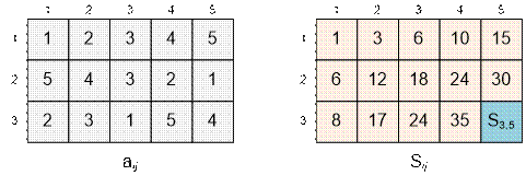 и на лету пересчитываем и выводим частичную сумму Sij. В таком случае входной массив содержать не надо.