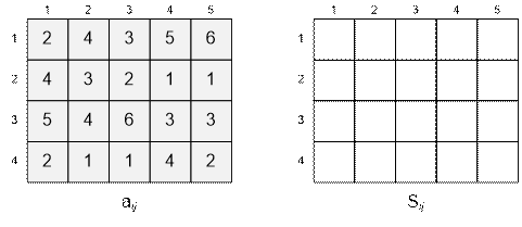 s[i][j] = s[i – 1][j] + s[i][j – 1] – s[i – 1][j – 1] + aij