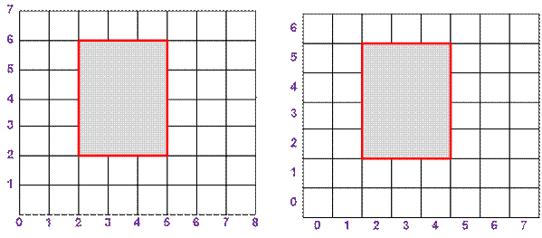 прямоугольнику (2, 2) – (5, 6) в узлах сетки