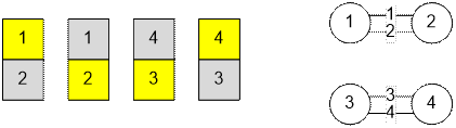четыре карты. Желтым обозначим стороны карт, которыми они будут расположены
