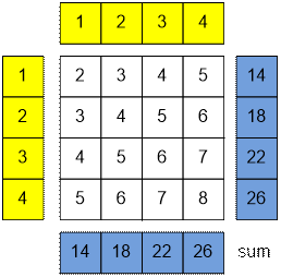 суммы по строкам, внизу – суммы по столбцам. Заметим, что суммы в соседних