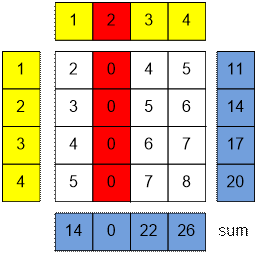 “C c” – сумма всех значений в столбце c, вывести результат и установить все значения в столбце c равными