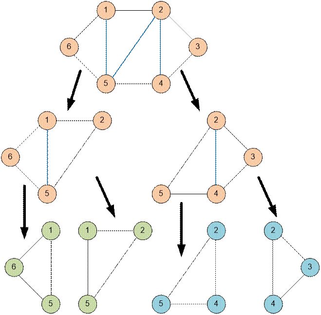 поиск в ширину и снова продолжаем делить многоугольники по диагонали. Процесс